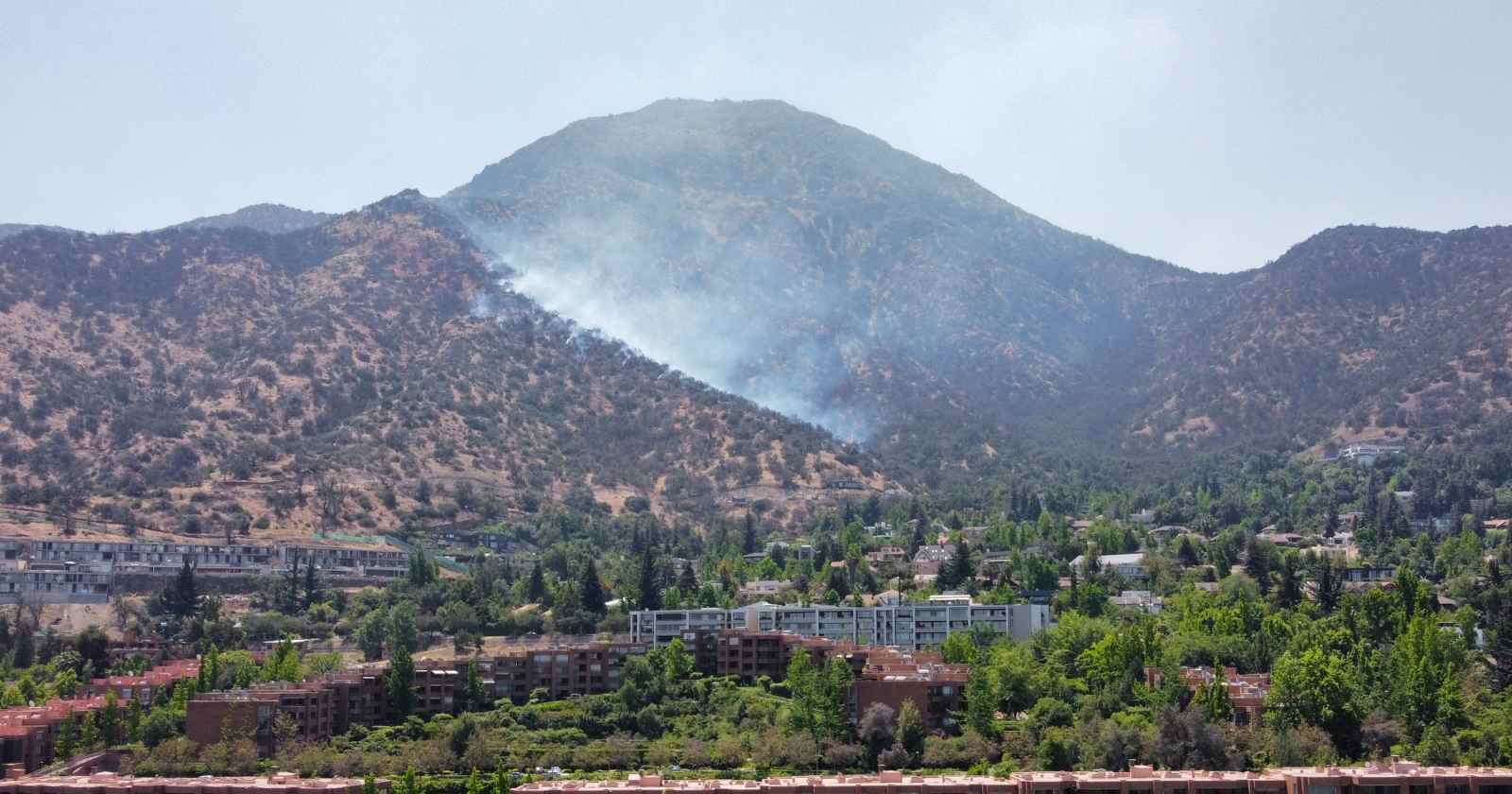 Voluntarios de Bomberos y personal de la Corporación Nacional Forestal (Conaf) combaten desde el mediodía de este viernes un incendio forestal que afecta a la ladera del cerro Manquehue, en la comuna de Vitacura.