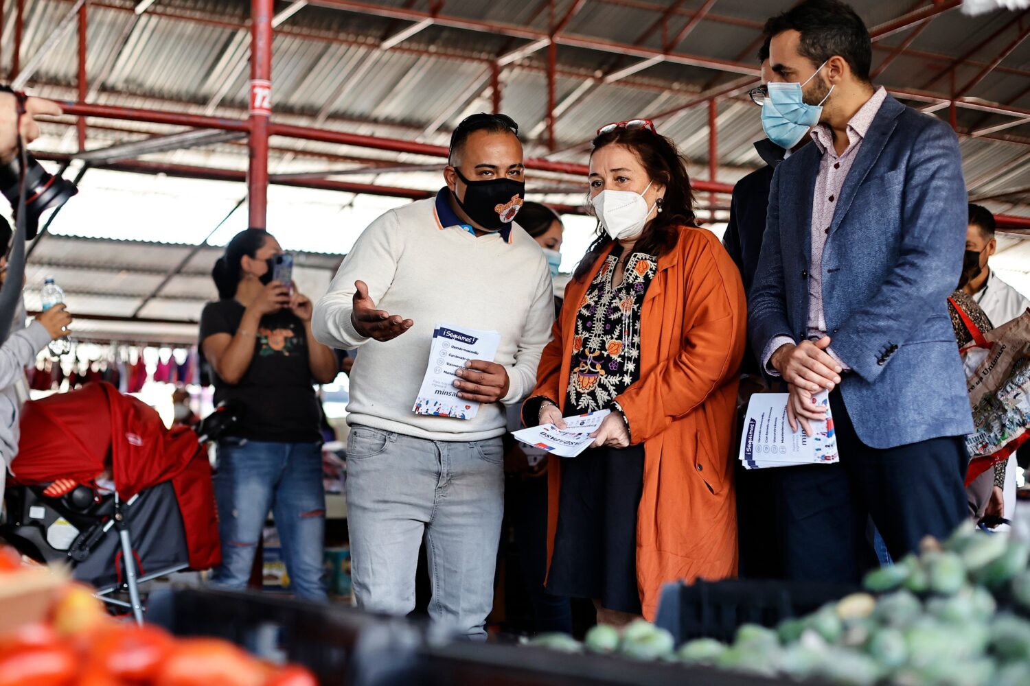 La autoridad visitó la feria Juan Pinto Durán en la comuna de Macul, en donde destacó el alto cumplimiento de las medidas de autocuidado por parte de los vendedores y los clientes, además del gran nivel de vacunación con tercera dosis que tiene la zona.