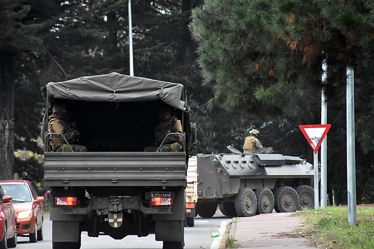 “El Gobierno ha decretado un estado de excepción en la provincia de Arauco, en la provincia de Biobío y en la región de La Araucanía y ayer se logró que el parlamento autorice una prórroga del mismo y la presencia de las Fuerzas Armadas y el trabajo conjunto de ellas con las policías es para actuar de manera oportuna y para garantizar seguridad a las personas”, añadió.