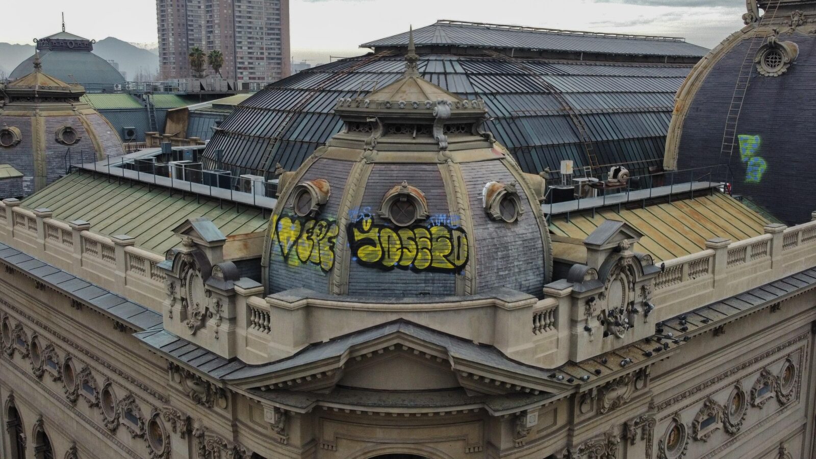 La situación quedó al descubierta durante el jueves pasado, luego que se conocieran imágenes de dos personas que subieron hasta el techo del edificio patrimonial para realizar un grafiti, el que quedó plasmado en el costado oriente de la estructura.