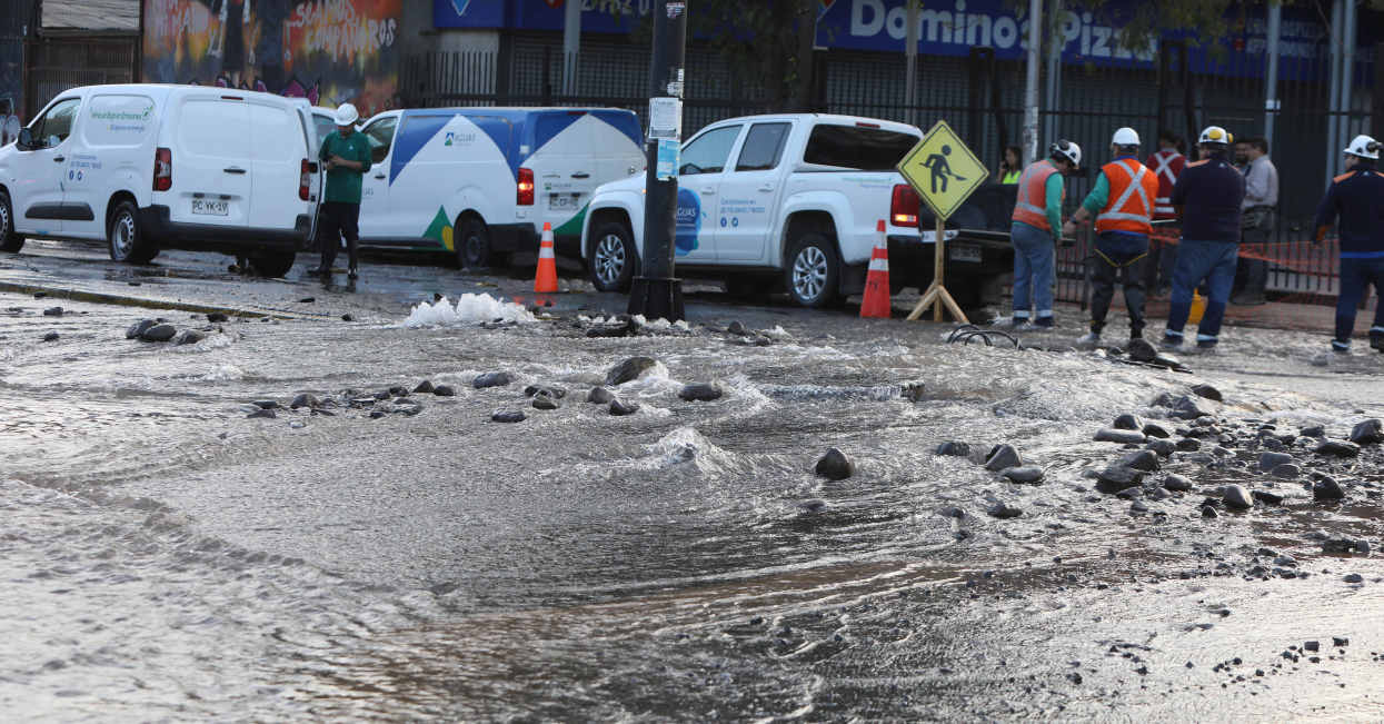La rotura de matriz en Recoleta se mantiene bajo labores de reparación, por lo que el sector de Avenida Recoleta con Santos Dumont permanece con un corte de tránsito.