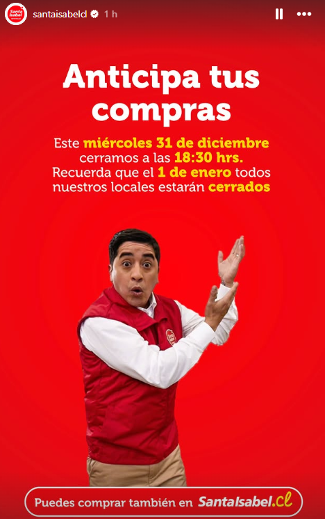 - Miércoles 31 de diciembre: los malls abrirán desde las 10:00 hasta las 19:00 horas.