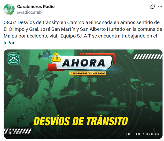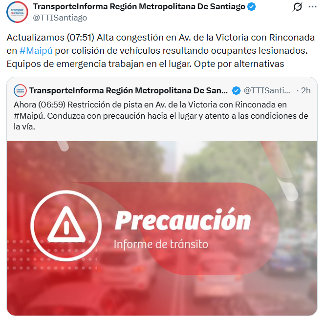 Según explicó el capitán Pablo Salazar, de Carabineros de Chile, “el accidente se produjo cuando el bus interurbano intentó girar hacia el norte, momento en el que fue impactado por el bus del sistema RED que circulaba en la misma dirección”.