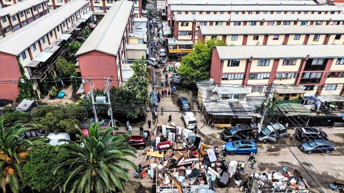 A raíz del fenómeno meteorológico, el agua superó el metro y medio de altura en los primeros pisos de sectores al poniente de la comuna y en Camino a Melipilla.