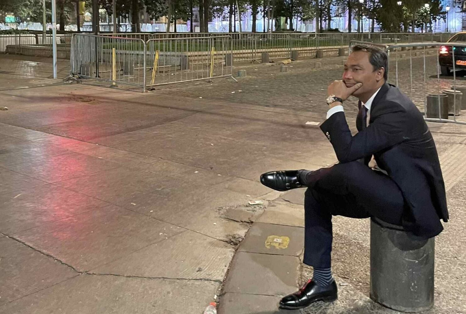 Mientras esperaba su auto, la señora del embajador tomó una foto q muestra al embajador sentado en una piedra cerca de la moneda.Posteriormente EL subió la foto a sus redes y envió un tweet que ha sido ampliamente comentado en su país por la “descortesia”de anfitriones chilenos.