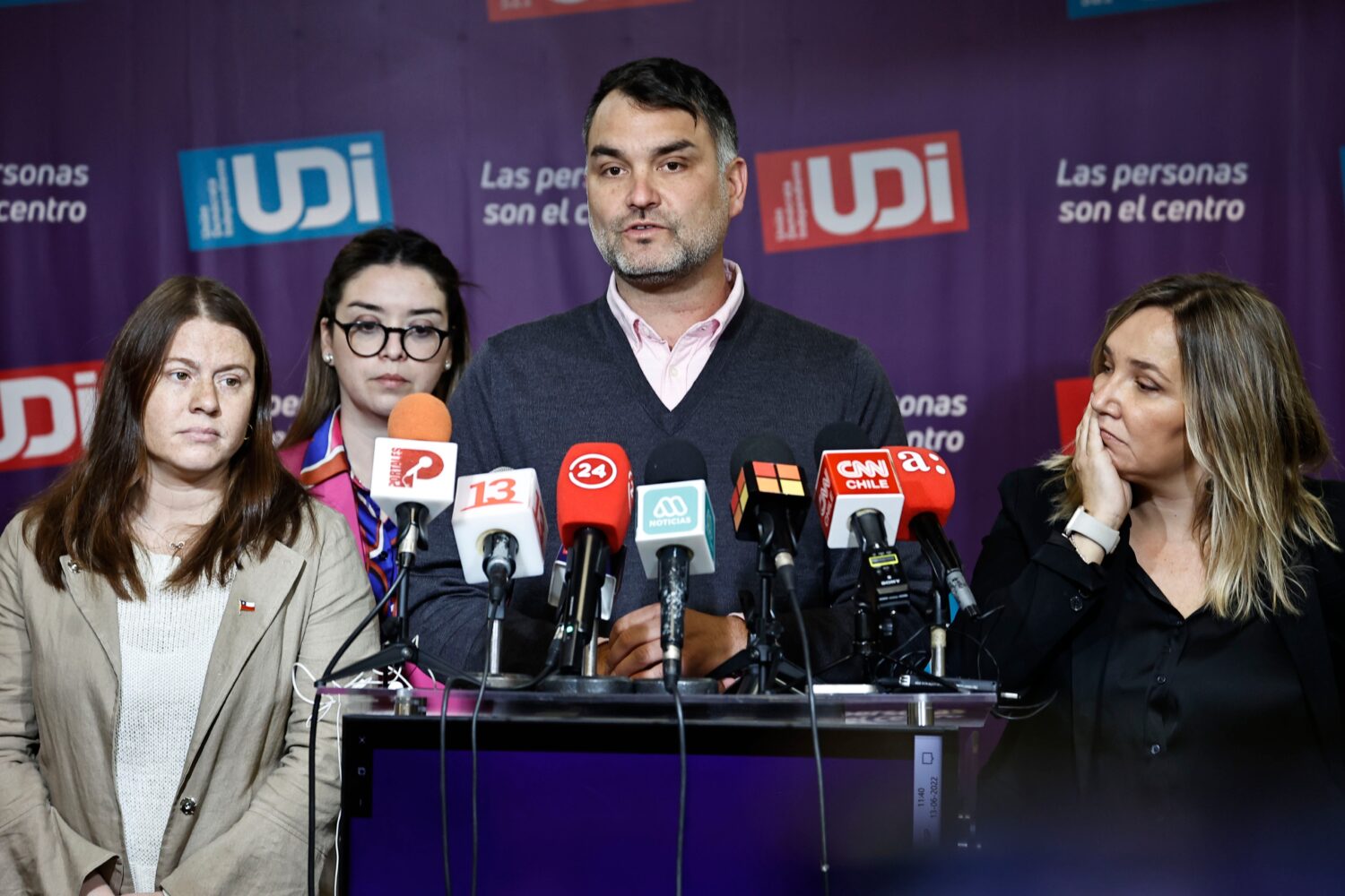 En ese lugar el timonel de la UDI fue interceptado por lo que él estimó un grupo de unas 30 personas.