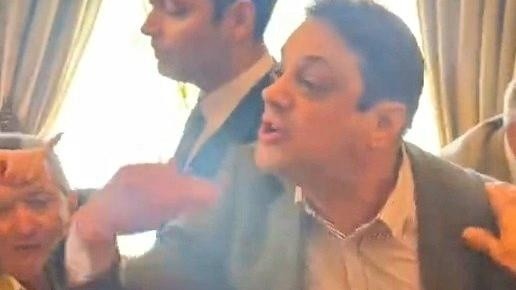 En medio de la trifulca, una mujer, la jefa de gabinete de Rivas, se acerca a él para decirle algo al oído y luego lo toma del brazo, intentando sacarlo de la mesa. Sin embargo, Rivas se levantó aireadamente de su asiento y le responde con un grito de “suéltame” mientras retira bruscamente el brazo. En tanto, las personas sentadas alrededor de él le indican con un aspaviento que se retire del lugar.