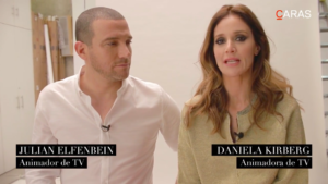 En la publicación, el animador figura vestido mientras que a ella aparece con torso desnudo.