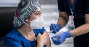 Zulema Riquelme, una TENS de 46 años, fue la primera funcionaria UCI del país en recibir una dosis de la vacuna desarrollada por Pfizer y BioNTech.