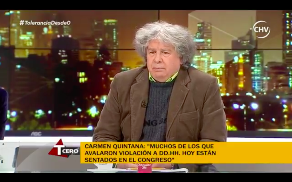 En junio de 2015, Carmen Gloria Quintana fue la invitada estelar del programa Tolerancia Cero, en Chilevisión, donde explicó las acciones legales en torno al dramático “caso quemados”, momento que fue revivido anoche en un programa especial donde se recordaron los mejores y más polémicos episodios del programa político que regresa a las pantallas en los próximos días.