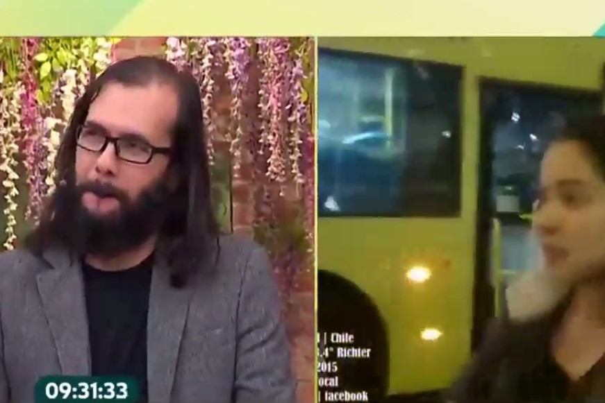 Como es usual, Lagos explicaba la posibilidad de que exista un sismo en Chile. Sin embargo, su cara de molestia era evidente ante una música apocalíptica que sonaba de fondo. Ahí es cuando comienza un tenso diálogo con Martín Cárcamo.
